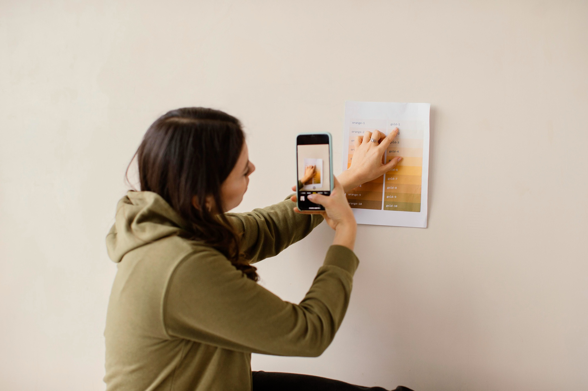 Una forma de alejarnos de la escena y observar como queda es sacando una foto. Tambien podes utilizar aplicaciones como capcut y modificar aspectos de la fotografía que quieras probar. Podes sacar la foto a un mueble específico que tenga su propio fondo e usar una aplicación para quitar fondo e ir poniendo el color que elegiste. Es otra manera mas tecnológica de hacerlo. Sino podes hacerlo tradicional.